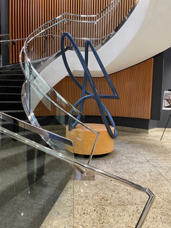 Art plays a meaningful role in the design of the campus as well. Two “Elevate” sculptures, commissioned for the grand staircases, reflect FBIN’s upward momentum. When looking from below, they appear just as abstract forms, but from the top of the staircase landing, the Fortune Brands logo reveals itself – a hidden Easter egg that symbolizes the company’s creativity, curiosity and ongoing evolution.